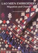 The Lao Mien, a subgroup of the Chinese Yao, lived in relative isolation in northwest Laos until the Vietnam War when great numbers were forced out of their villages and into refugee centers in Laos and later in Thailand. In the 1980s many thousands of them were resettled in the United States, Canada and France. As these emigrations tore them away from age-old traditions their embroidery, an essential skill of every woman, used on all her clothing, began to reflect the changing situation of the Mien. As they came in contact with others, Mien women added new designs and colors to their embroidery. As commercial threads became available, the embroidery became more colorful and the colors more uniform. Now in the USA, Mien women attend school and hold jobs. They embroider less but demand a much more densely embroidered product with precise color selections. With reliable incomes, most now order finished Mien clothing from relatives still in Thailand, Laos and China. The clothing is seldom worn but is saved in baskets in closets in the hope that somehow the cultural traditions of the Mien will thus be preserved.